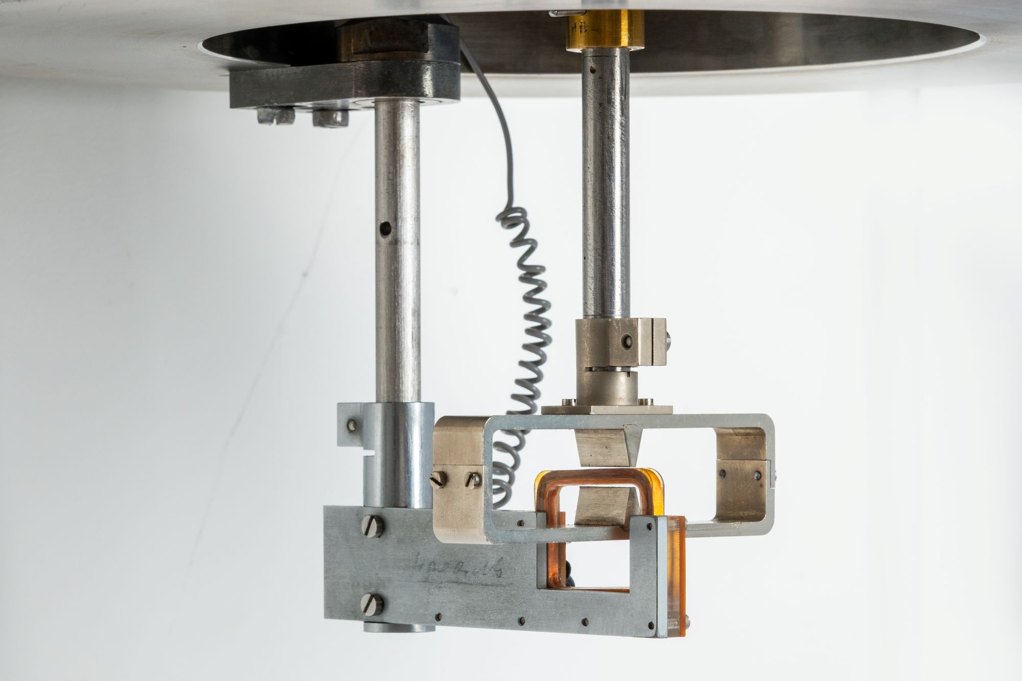 Fedchenko’s movement acts electromagnetically on the pendulum, delivering a precisely timed impulse at the midpoint of its arc to maintain amplitude with minimal disturbance, and correct for circular error. This is effected through a permanent magnet fixed at the base of the Invar pendulum, which passes through two coils on the same former – one is a sense coil; the other a drive coil. As the pendulum swings through the midpoint, the magnet induces a small voltage in the sense coil; this pulse is fed into the drive coil, creating a magnetic field which interacts with the pendulum’s magnet. It is an effective innovation, but Fedchenko’s early experiments on these principles were disappointing until he accidentally left the centre spring of the pendulum’s suspension under slight tension. In so doing, he discovered he had made the suspension tuneable and isochronous, meaning the period of the pendulum remained constant even if the arc of the swing changed. The clock he designed to these specifications runs on a small battery, keeps time to within a few thousandth of a second per day, and was widely used in Soviet observatories, broadcasting centres and transport networks from the 1950s.