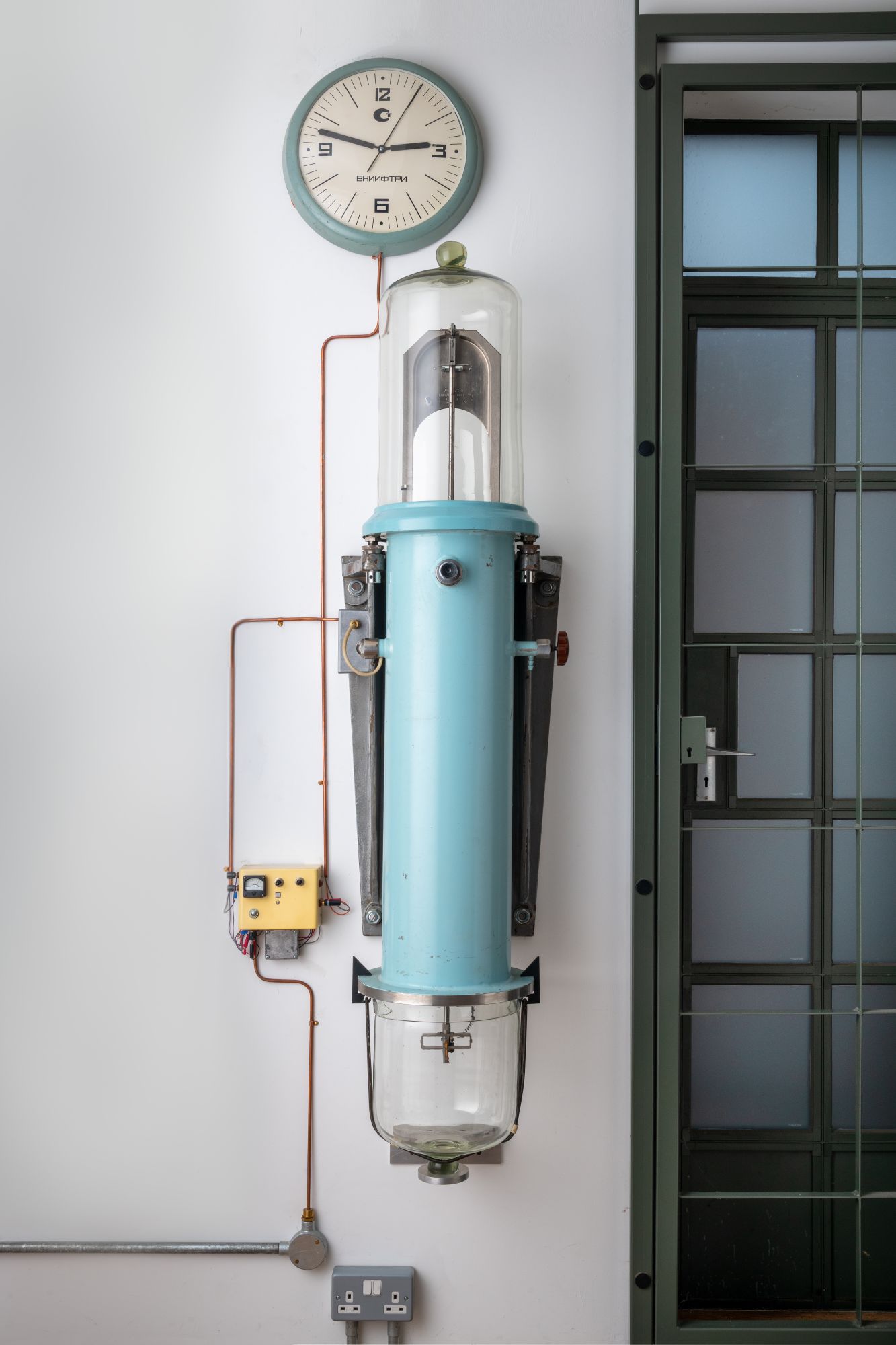 In 1955, behind the Iron Curtain, Feodosii Fedchenko created the world’s most accurate pendulum clock, the ‘AChF-3’. This example was bought by the Obninsk Institute for Nuclear Power Engineering, where, at some point, the small mirror (used for illuminating the pendulum beat-scale) was broken. The clock retains the makeshift replacement: a powder compact badged by the Exhibition of Achievements of the National Economy (VDNKh). This national trade fair was a grand celebration of the Soviet passion for technological innovation – much like the AChF-3 itself.