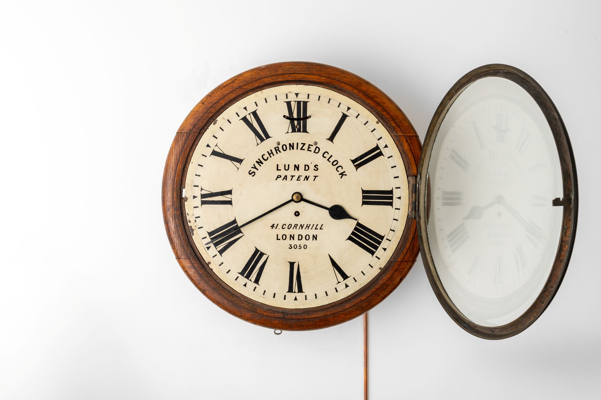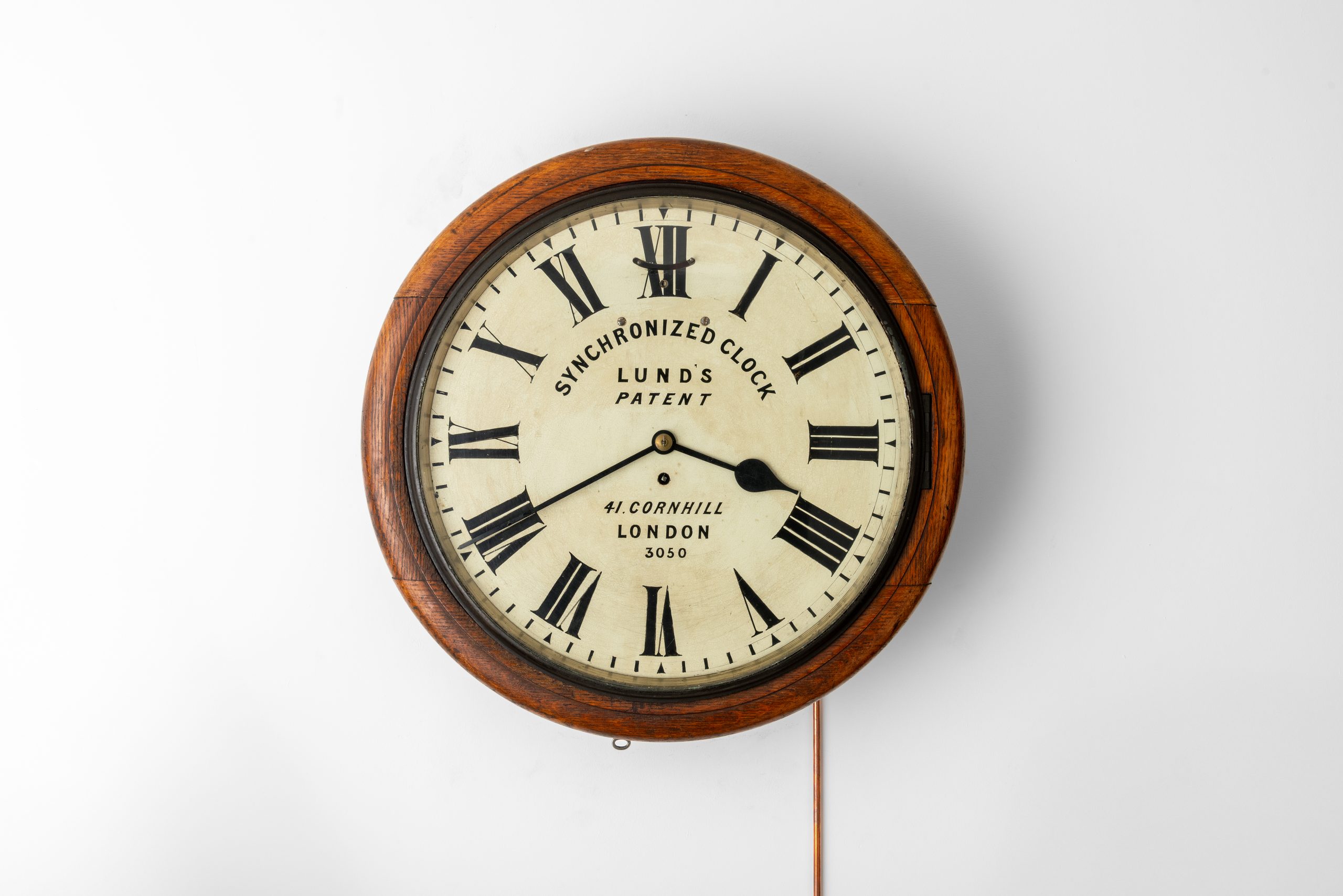 on dial: SYNCHRONIZED CLOCK | LUND'S | PATENT | 41 CORNHILL | LONDON | 3050